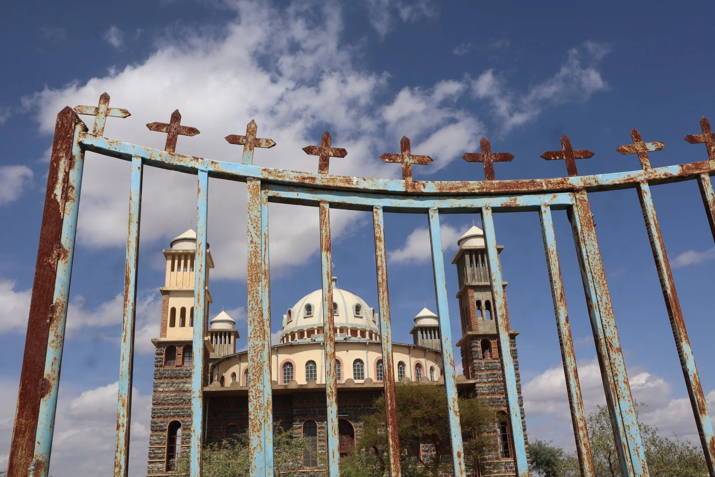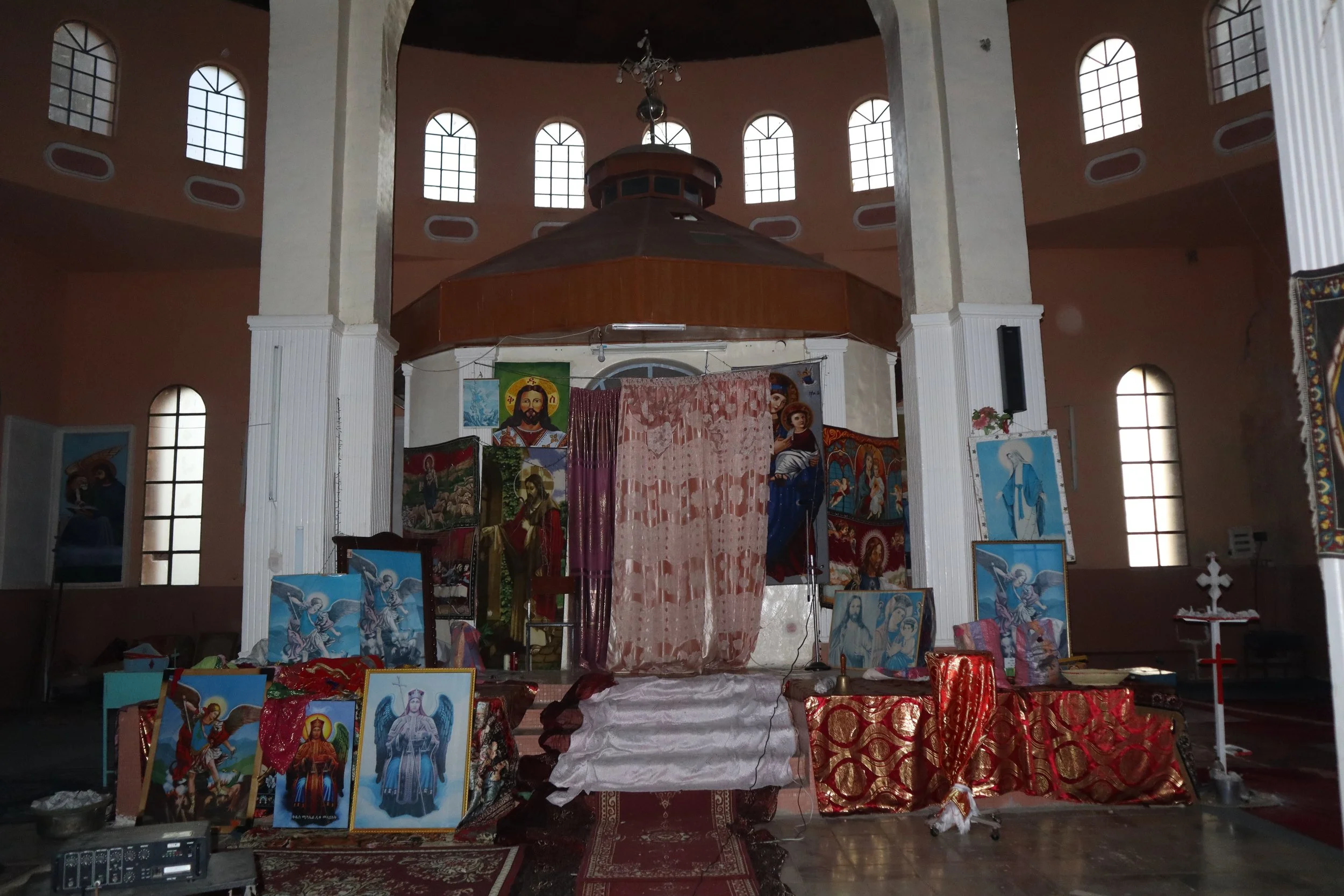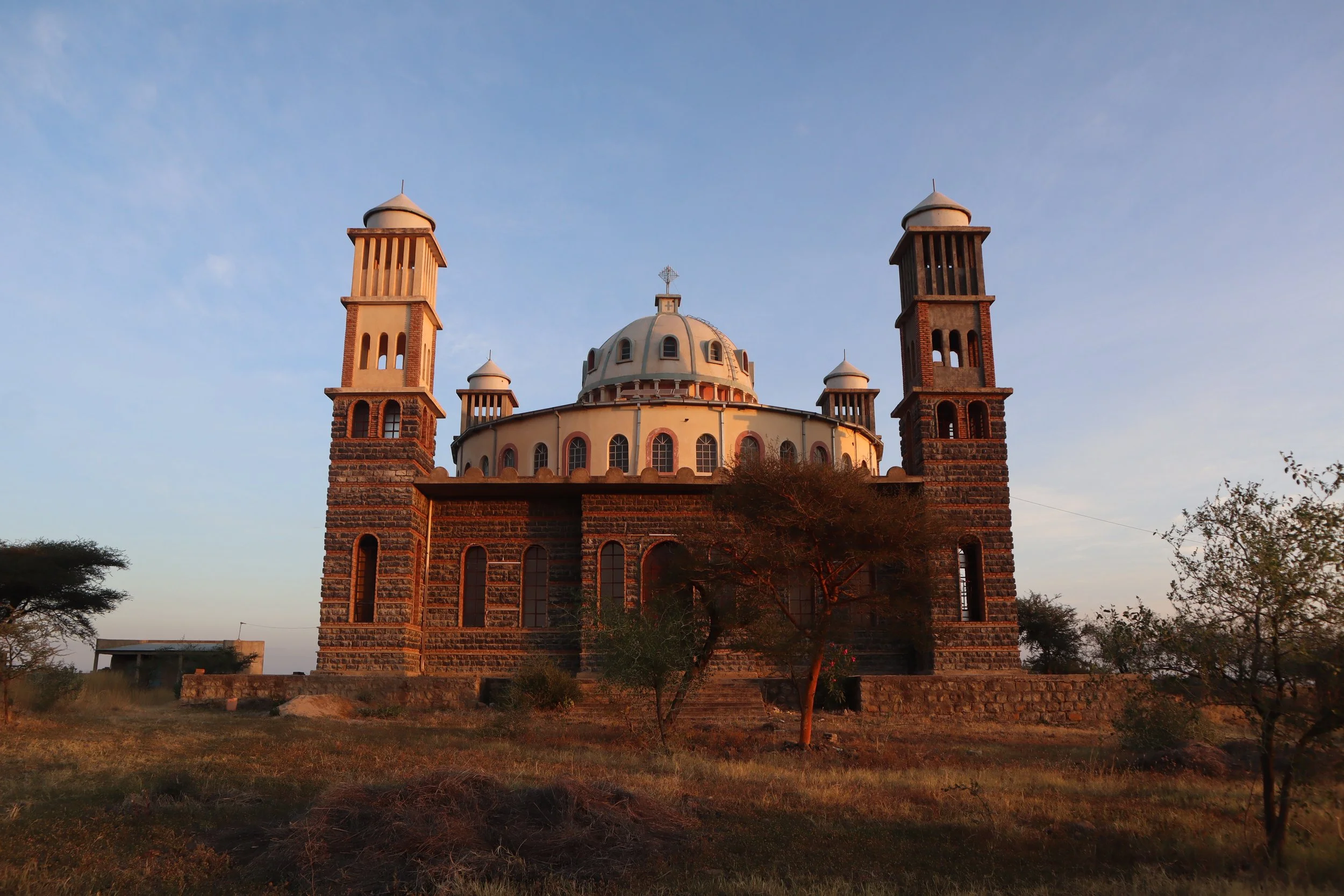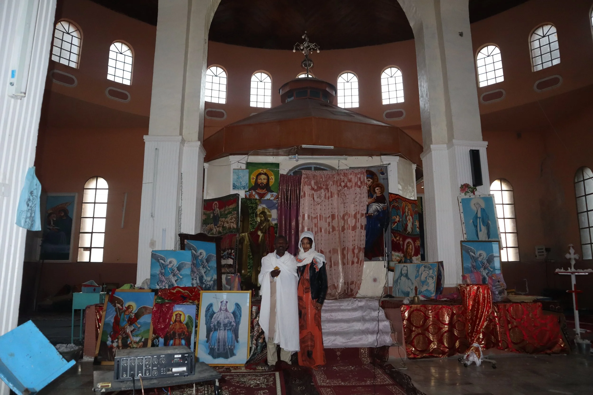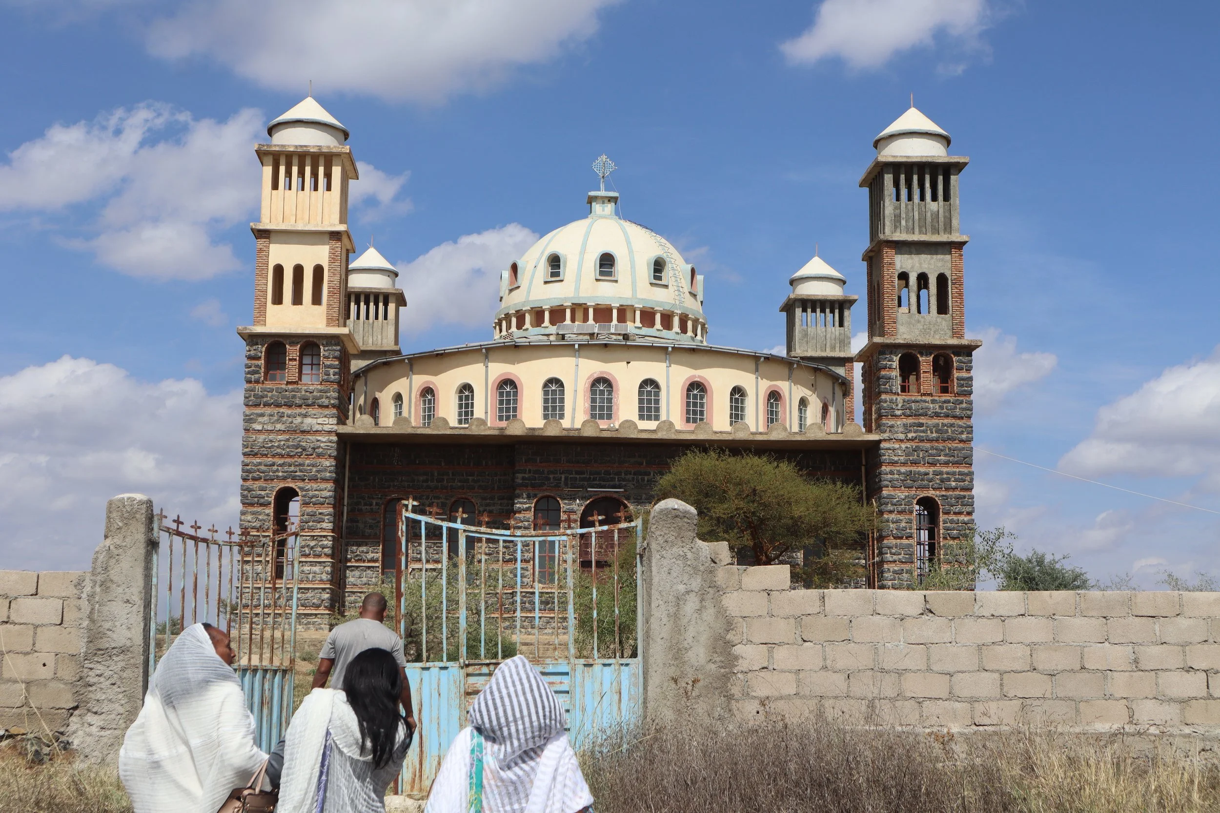 Meaning my grandfather sourced engineers to build this church, gathered funding, and consulted the nearest monastery when constructing this church for his village. It is one of the only churches in the South of Eritrea blending both the circular and cubic shapes of orthodox architecture.