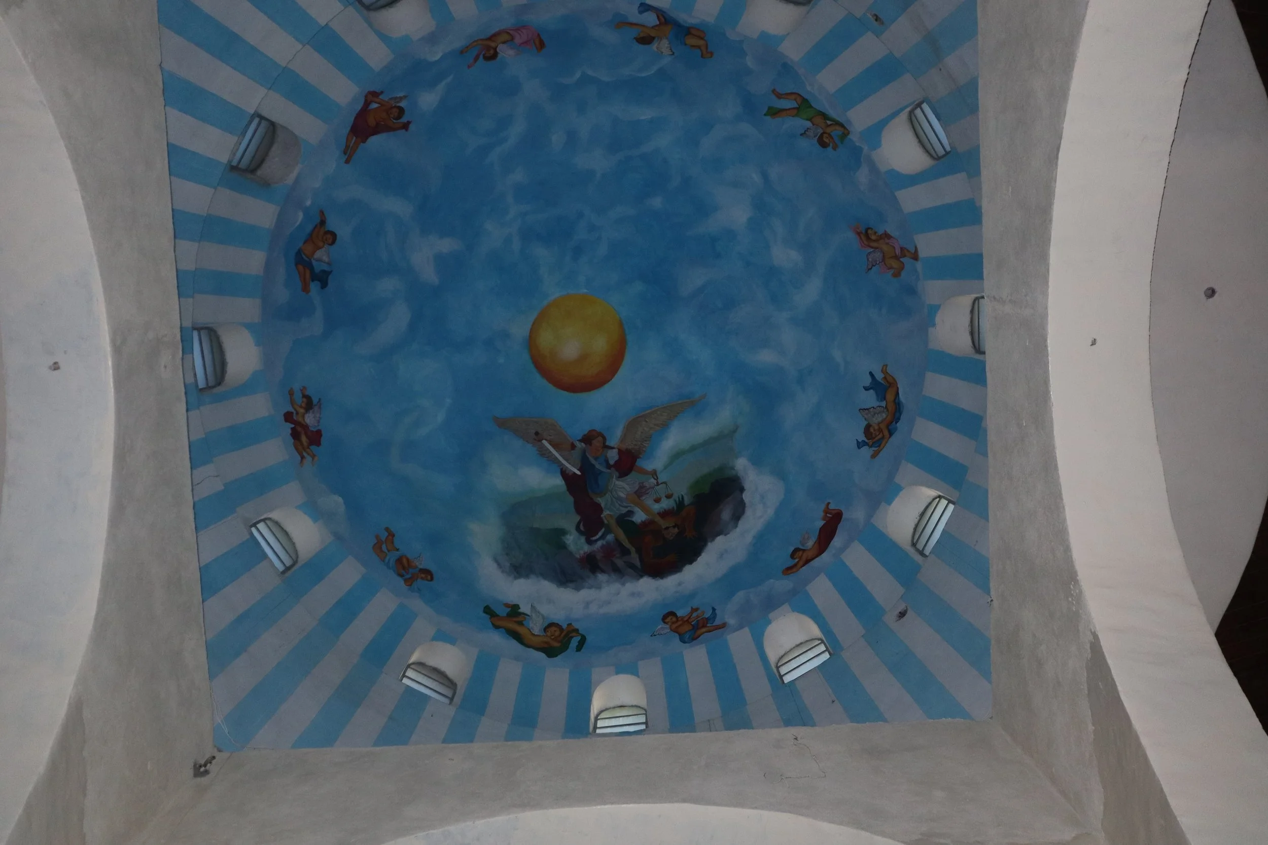 Above: Once I walked to the center of the church, I immediately glanced up curious if there was anything painted there. I was met with this glorious painting of St. Michael surrounded by angels on the inside of the dome.